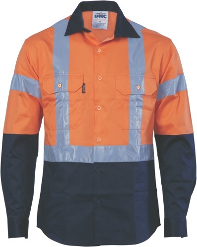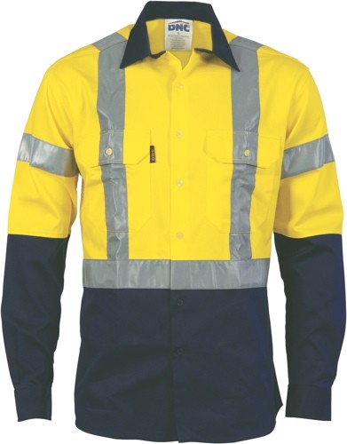 DNC3983, HiVis D/N 2 Tone Drill Shirt with H Pattern Generic R/ Tape - Long sleeve