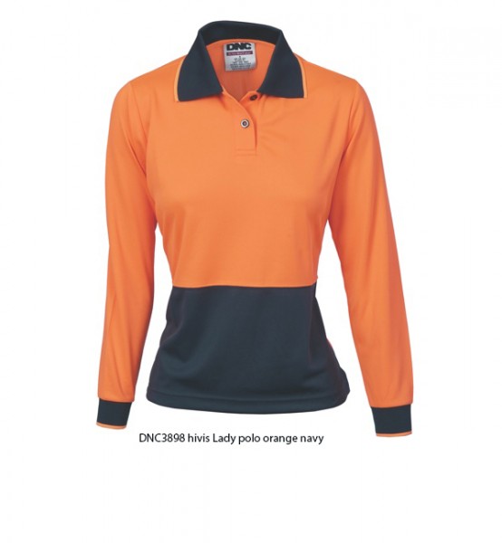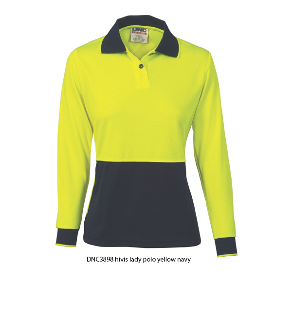 DNC,3898. Ladies HiVis Two Tone Polo Shirt - Long Sleeve